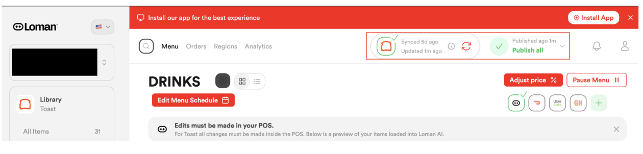 Sometimes you’ll need to resync your menu with your Loman's agent, such as an Out of Stock item becoming available again or general menu updates/price increases. Please follow the steps shown in the graphic to complete this update.